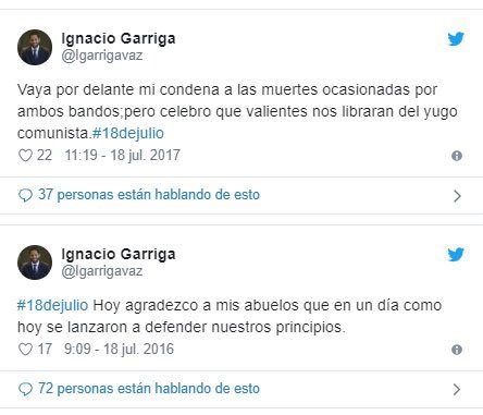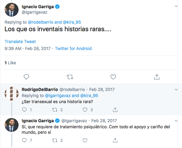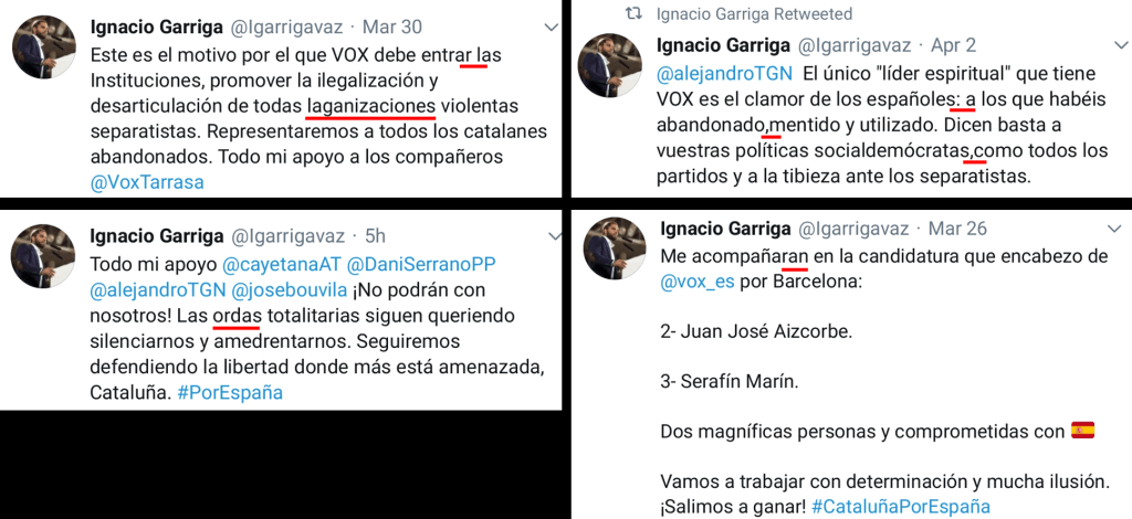 Ignacio Garriga Vaz de Concicao, barcelonés de 31 años de origen ecoguineano y ex militante del PP. Su madre, Clotilde Vaz de Conciçao, nació en Malabo (Guinea Ecuatorial), en el seno de una familia de terratenientes. Era hija de Mercedes, la abuela de Garriga, quien, cuando vio que allí no había futuro para sus hijos (incluída Clotilde), los mandó a España y ella se quedó allí. Clotilde “era muy patriota, se sentía muy española y ya advertía del peligro de los nacionalismos latentes”, y era militante y activista de Alianza Popular, el partido fundado por ex jerarcas franquistas y que posteriormente cambiaría de nombre para llamarse «Partido Popular«.