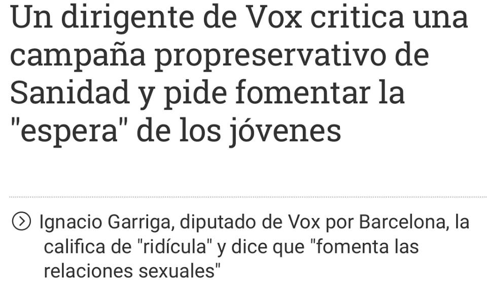 Ignacio Garriga (candidato de Vox a la alcaldía de la capital catalana) ha declarado a la agencia EFE que si llega a la alcaldía suprimirá el centro LGTBI de la ciudad condal. Para Garriga, dicho centro supone un “gasto político” que hay que suprimir porque “no tiene ningún sentido”.