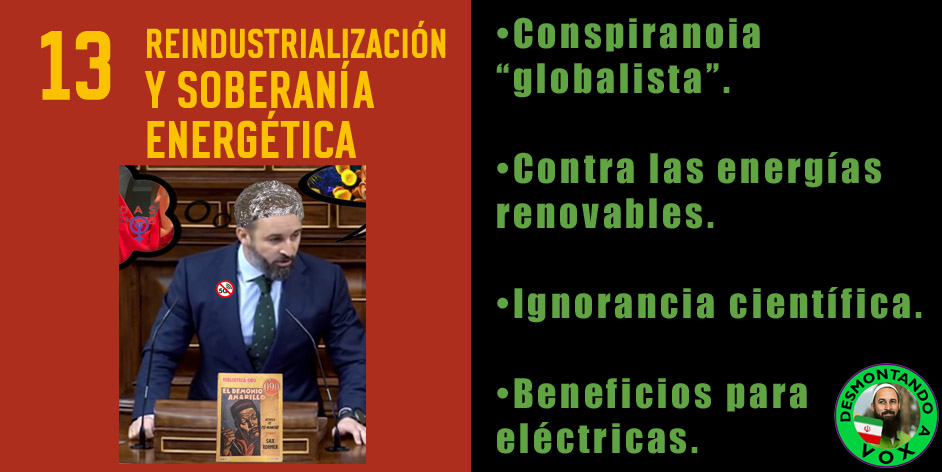 Pues sí, en lugar de la élite que concentra el poder económico (el poder, a secas, por tanto), para VOX existe una «élite globalista» que inventa una «religión climática» y unas condiciones de comercio internacional diseñadas exclusivamente para perjudicar a España. Más concretamente, a tí, trabajador de clase media o proletaria.