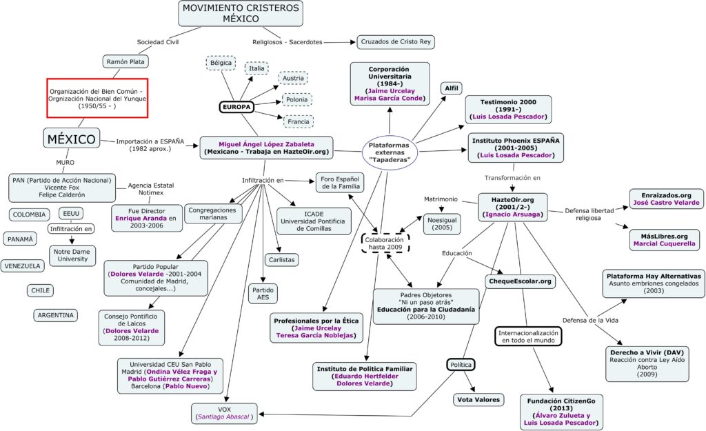 En este artículo intentaremos recopilar la información disponible sobre las relaciones existentes entre el partido de extrema derecha VOX, la asociación homófoba HazteOir y la secta ultracatólica de origen mexicano El Yunque. De confirmarse esta relación estaríamos hablando de un intento de controlar el Gobierno del Estado Español por parte de un grupo religioso fundamentalista internacional. Para ello utilizan partidos políticos, medios de información y de difusión de «fake news», sociedades secretas, etc.