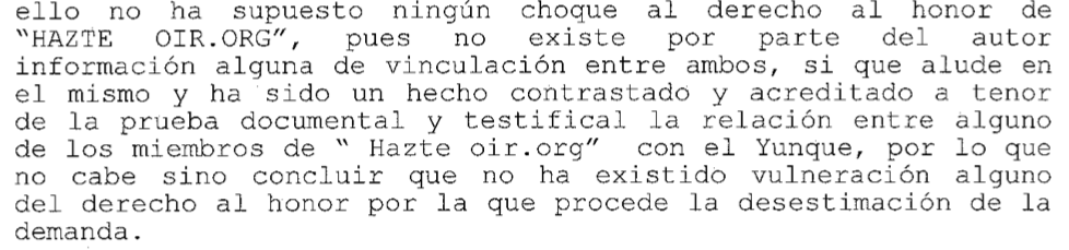 HO, por su parte, desmiente la vinculación con El Yunque, tergiversando lo que dice la sentencia.