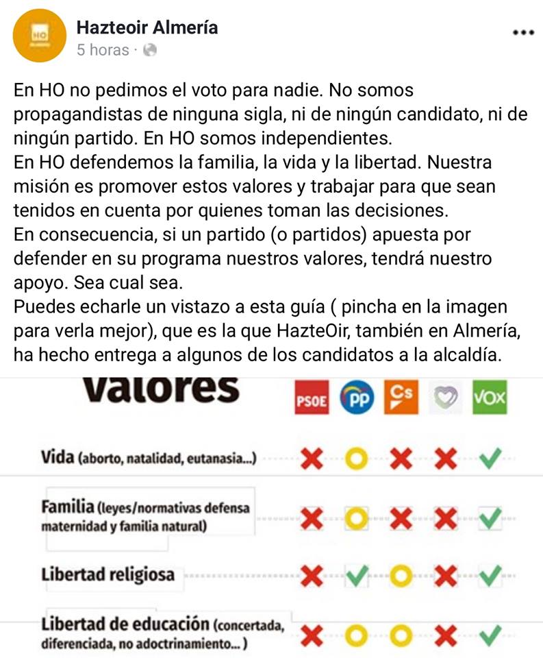 HazteOir niega las vinculaciones con VOX, incluso niega que pida el voto para ningún partido. No obstante, los hechos contradicen estas afirmaciones.