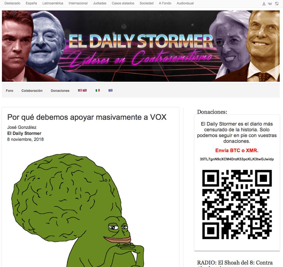 Para explicarlo, debemos remontarnos a diciembre de 2018. En esas fechas es detenido en Zaragoza el administrador de una de las web neonazis más influyentes del mundo, la versión española de Daily Stormer. En el ordenador del detenido, Mario P. G. de 23 años (en 2019) se encontró pornografía pedófila.